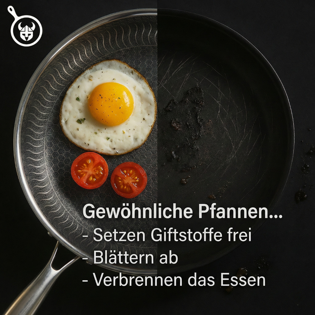 Herkömmliche Antihaftpfannen enthalten schädliche Stoffe wie BPA, die sich mit der Zeit lösen und in die Lebensmittel übergehen können – mit potenziell negativen Auswirkungen auf die Gesundheit.